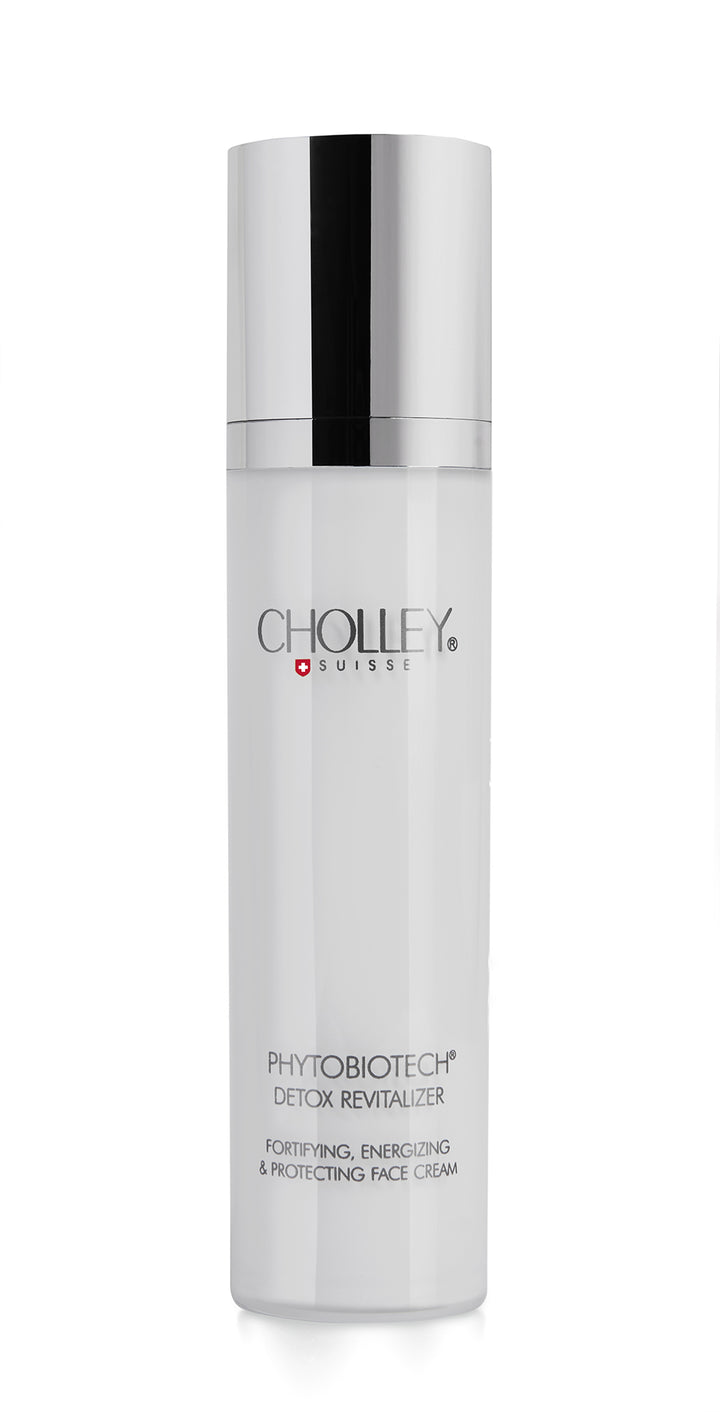 CHOLLEY PHYTOBIOTECH Detox Revitalizer è un'eccezionale crema viso formulata specificatamente per proteggere dall’inquinamento e da altri fattori di stress che privano la pelle di forza e vitalità. È clinicamente testata con dimostrata efficacia nel ridurre fino al 50% l’ossidazione da agenti inquinanti urbani. Favorisce il rassodamento e l’elasticità della pelle grazie all’aumento fino al 45% della sintesi di proteine, come il collagene.